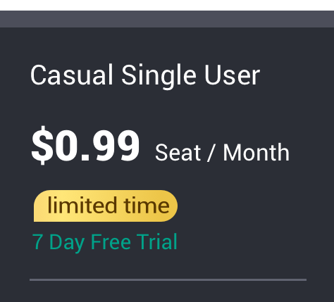 Casual Single User Includes:
